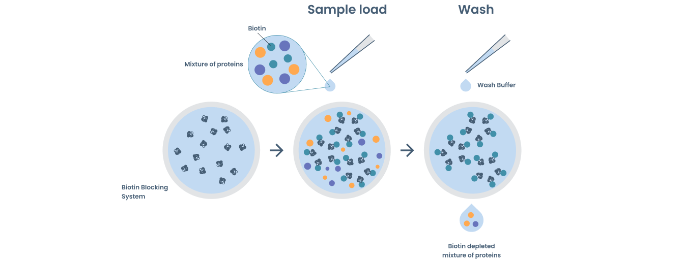 1-column 3 steps process for cell culture media purification. Biotin Blocking System serves as safeguard for column integrity and performance.